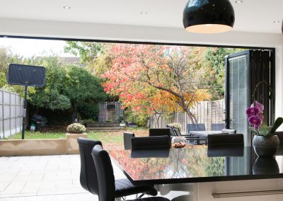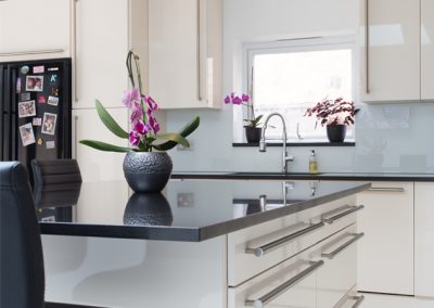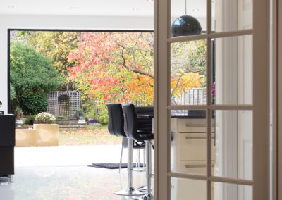 Shah and Jenny own a lovely large period home with lots of original features, which they live in with their extended family. They felt they needed more space for everyone and needed the downstairs to work for all of their individual needs. They decided to go ahead with a double storey rear extension, creating a large kitchen whilst remodelling the ground floor. The first floor extension created a large master bedroom with an en-suite and separate dressing area. This build had wow factor features such as a centrally located fireplace, which we opened up to create a fireplace serving two rooms allowing you to see straight through it. As you can see from the photos the kitchen has a very modern feel to it but is blended well with the original features of this Victorian house. Many aspects of the finish to this extension were bespoke to this house, such as skirting boards and architraves made by us to match the originals. The builder installed a large patio leading from the bi-folding doors of the kitchen, creating a feeling of the garden being an extension of the kitchen space. Shah and Jenny were very happy with the finished product and have since recommended the builder to two other family members.